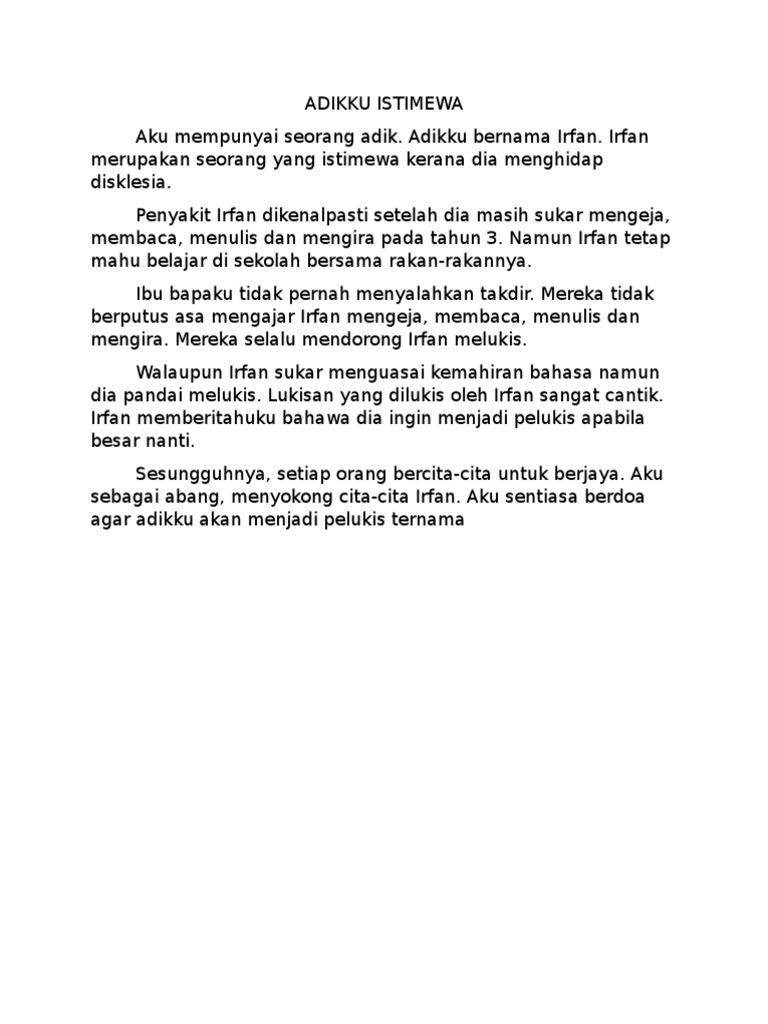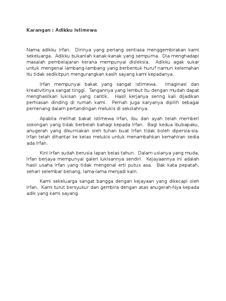 Contoh Karangan Adikku Istimewa Tahun 6